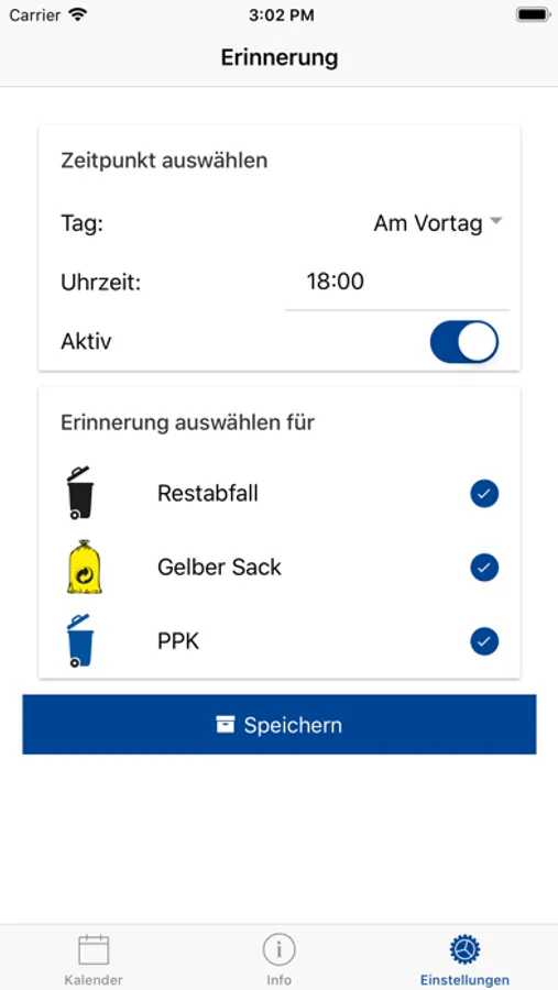 - Individuelle Einstellungsmöglichkeiten für die Erinnerung (Vortag oder