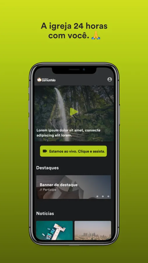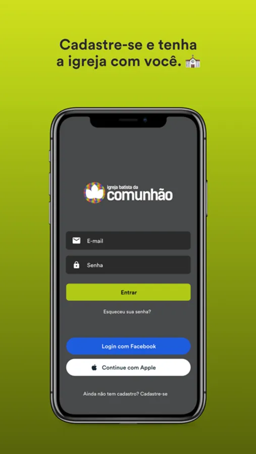 - Conecte-se com a igreja através dos grupos de interesse, receba conteúdo direcionado e obtenha sua carteirinha exclusiva.
