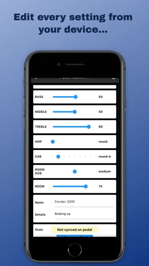 Edit all pedal settings from your device and save to a patch on your device building up your library.
