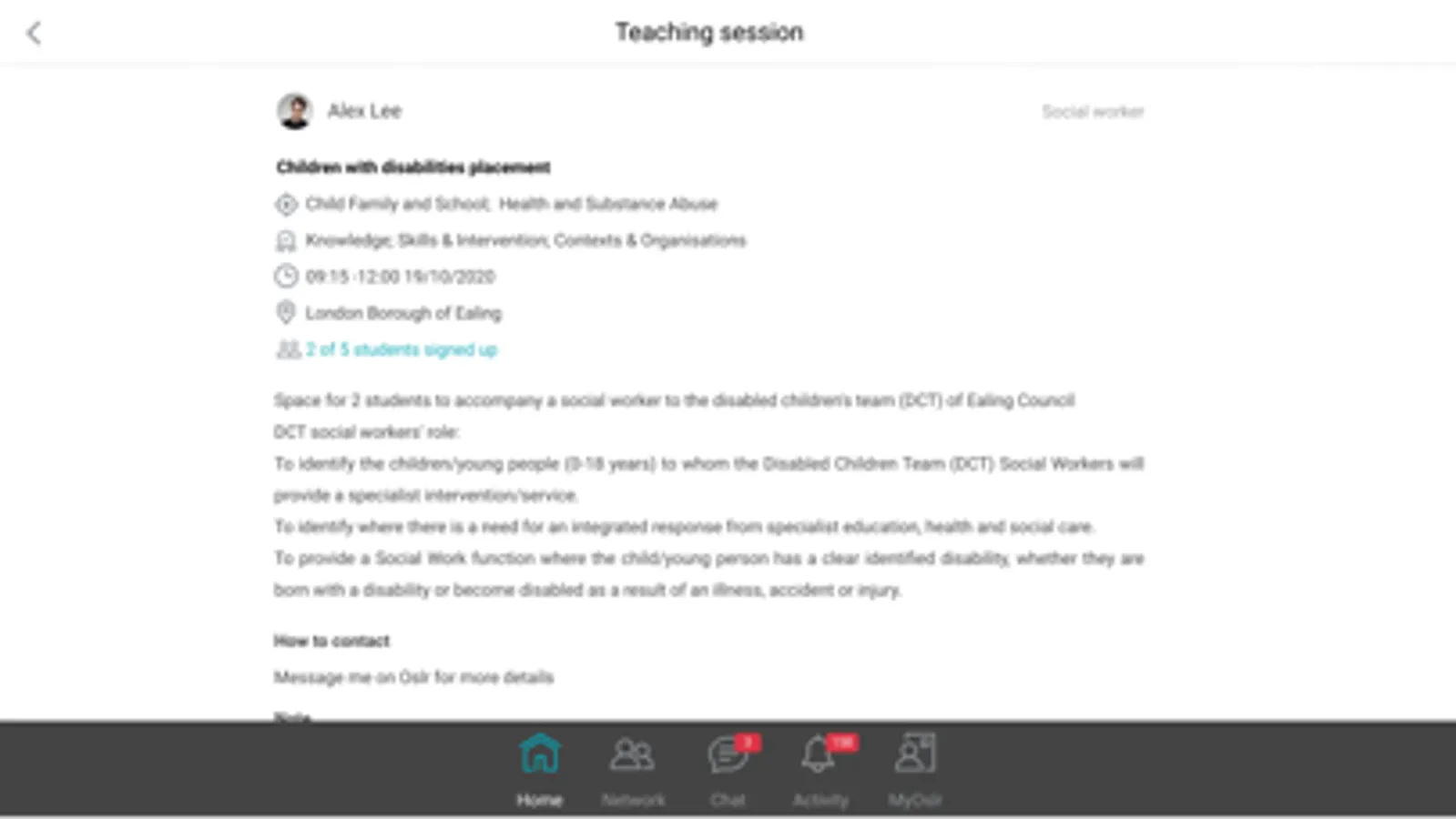 Oslr Social Care enables Social Workers and students to easily connect to arrange and capture essential workplace training and resources, to rapidly develop on the job skills and portfolios for CPD.