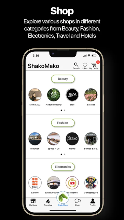 Designed specifically to connect customers and shops offering items and services in Beauty, Fashion, Electronics, Travel & Hotels.