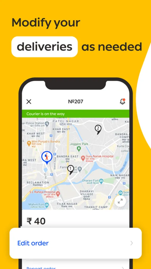 - Professional courier tracking app: track orders on the map and see the estimated delivery time;