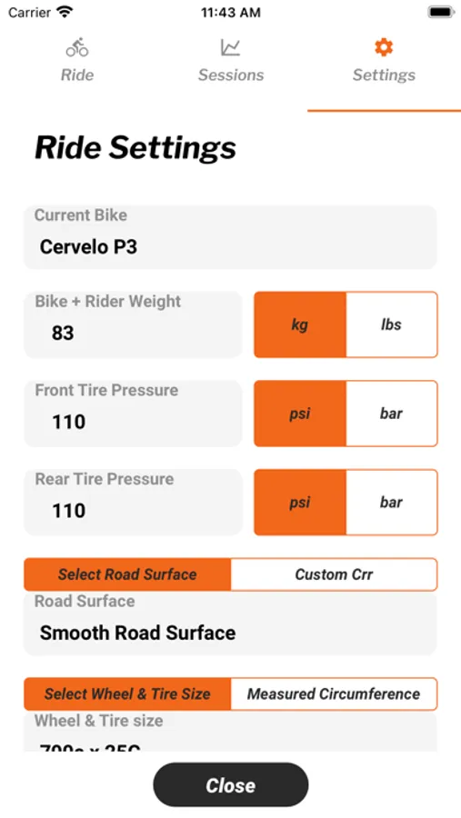 This app allows riders to see and record data from the Gibli Aero Sensor.