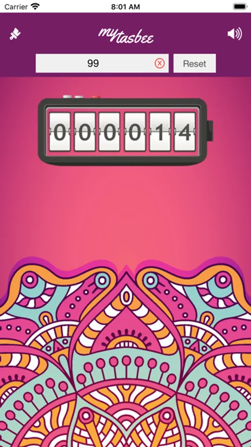 My tasbee has feature to set limit to your counter so when your counter reached the limit it automatically stops and vibrate. My tasbeeh has a feature to reset the counter and button is right next to limit bar. The best part of My Digital tasbeeh it has auto save feature, while you are using counter and suddenly you move to some other app, and when you return you can continue from the point you left.