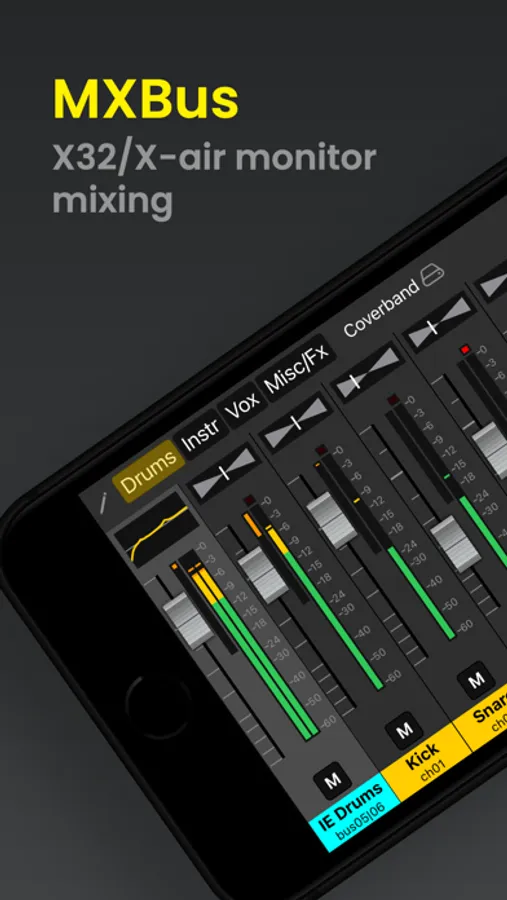 MXBus is a monitor mixing app for all Behringer X32 and X-Air mixing consoles that allows musicians on stage to control their own monitor mix with their iOS device. It also supports the Midas versions of these mixers (M32* and M-Air)