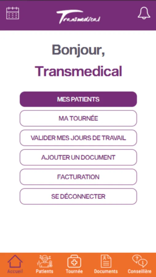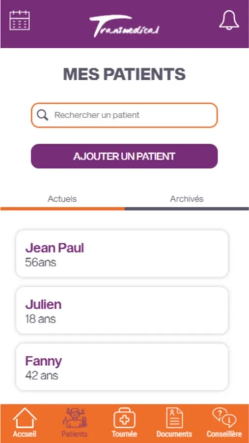 Application destinée aux infirmiers et infirmières de Transmedical et permettant de gérer les patients, les ordonnances, les tournées ainsi que la facturation