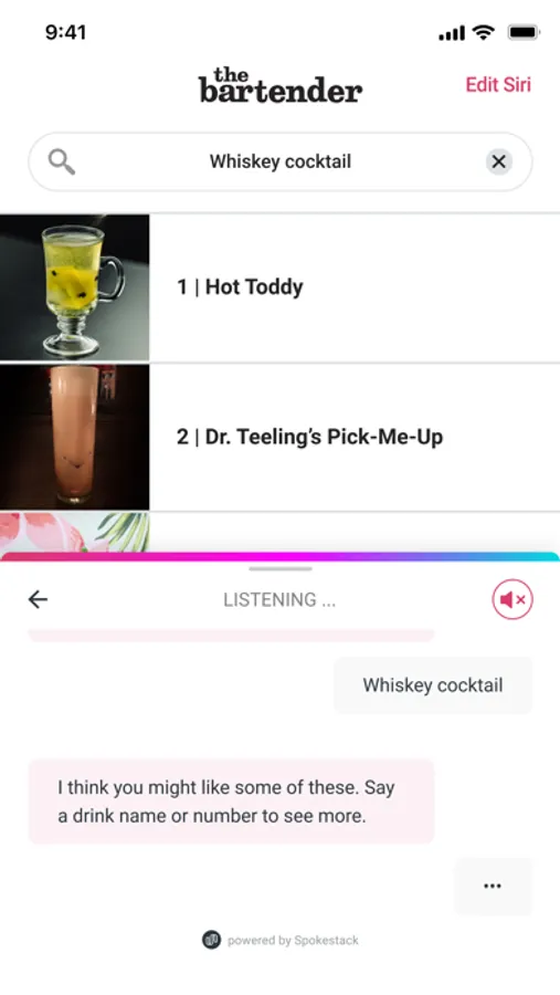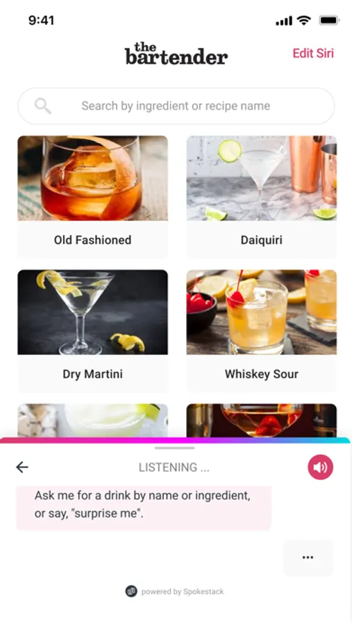 Get the Bartender is a voice-powered drink recommendation app. Now you can use your voice to ask for cocktail recipes without having to type. Just make sure to give access to your microphone and speech recognition so we can talk to you.