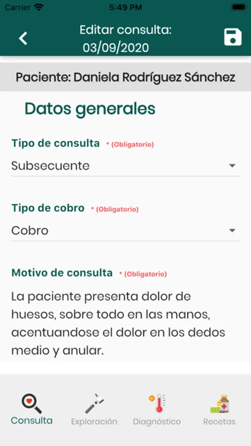 Esta aplicación para Tableta/Celular le permitirá controlar, acceder y registrar en todo momento y en todo lugar la información de sus pacientes, de una manera dinámica y móvil. Permitiendo llevar el control de la agenda de sus consultorios organizada por su asistente desde su consultorio, visualizando sus citas desde su App con un solo toque. Podrá llevar el control y el registro de la información de los expedientes clínicos de sus pacientes tales como: Datos del paciente, historial de consultas, citas, registro de nueva consulta e impresión de receta médica.