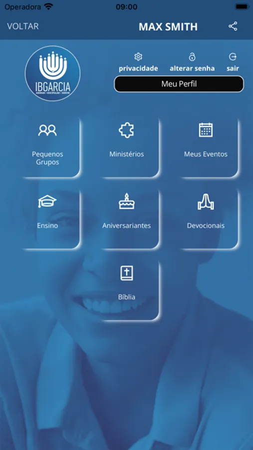 * No item "Meu Perfil" é possível atualizar seus dados cadastrais na Igreja;