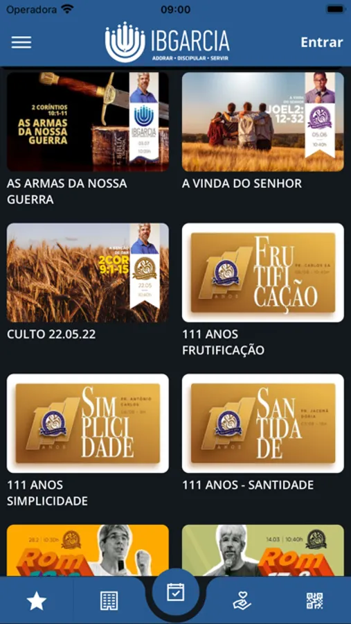 * "Conteúdos (Áudio/Vídeo): Permite visualizar e ouvir conteúdos da Igreja disponíveis no App;