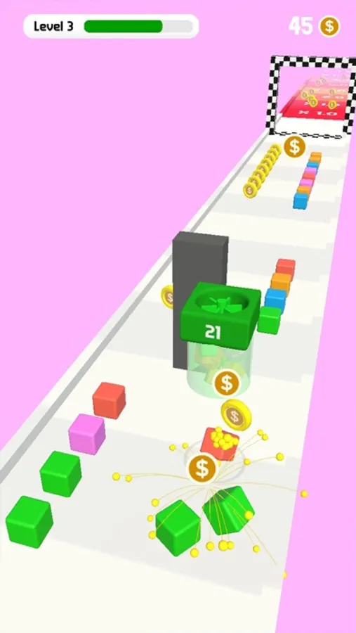 Tap and Hold to collect the cubes, and release to drop them to collect coins.