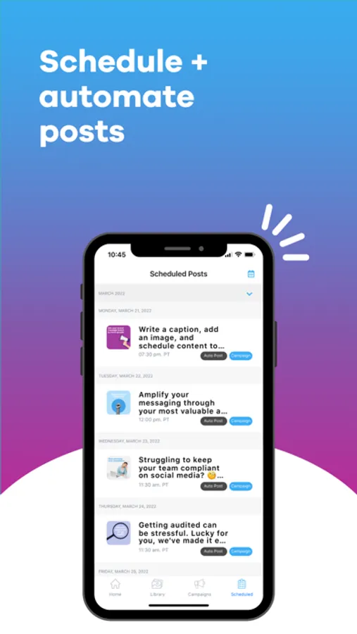 Operations: Custom app for your clients, library to store your valuable content, custom posting scheduler so you can set it and forget it