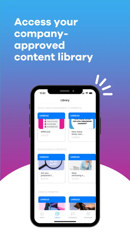 Each day, one of our social media experts will send you a prompt or a piece of content to post, and through our app you'll know what to post and be able to track and measure your ROI from all your postings!