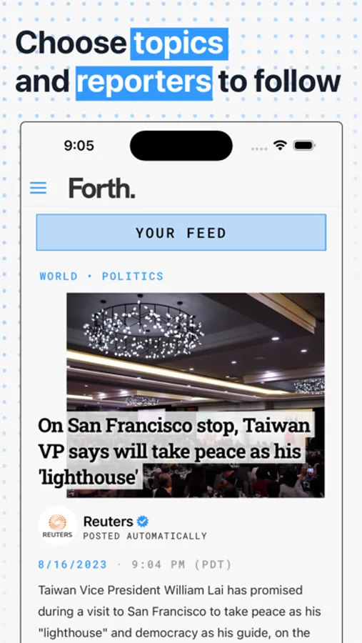 Forth takes the best of social media (brevity, threads) and leaves the rest. You can easily skim headlines and have a sense of what’s going on -- or dig in deeper. Each story is concise but offers context.