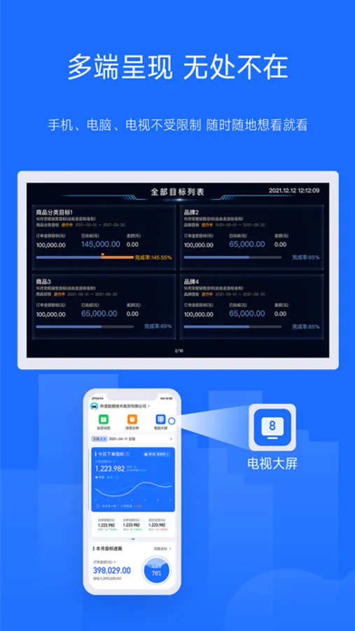 1、更全面、更方便的可视化经营数据,现场办公利器。