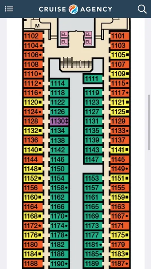 From here you'll be able to find out exactly where your cabin is located. You'll also be able to find out where your cabin is situated in relation to your friends on the same cruise ship.