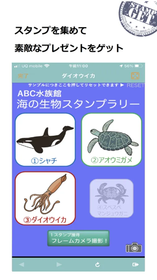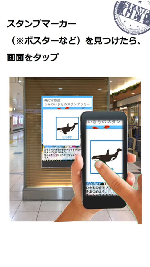 スタンプラリーポイントのポスターにアプリをかざし、スタンプをためていきます。