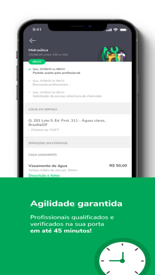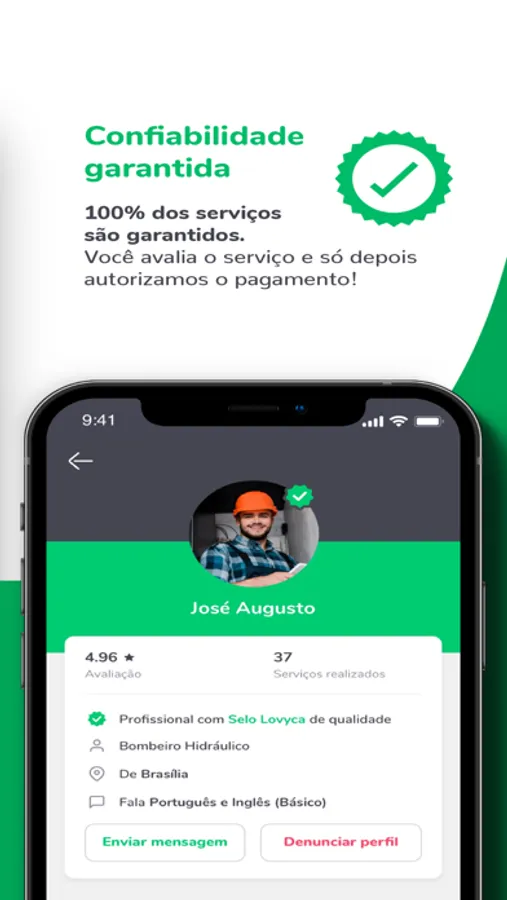 Conectamos usuários a prestadores de confiança, oferecendo garantia do serviço, além de pagamento seguro pelo app, com opção de parcelamento.