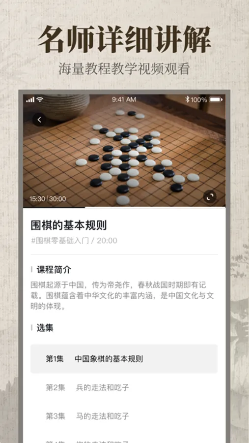 你可以跟着教学视频一起学,一起享受围棋的无限乐趣。