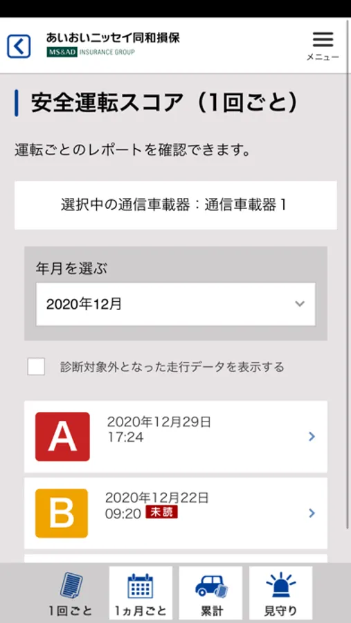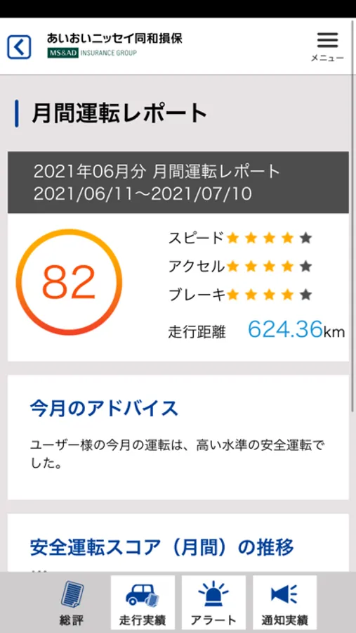急アクセル・急ブレーキ・速度超過の発生頻度等の運転傾向について、1回の運転ごとおよび1か月ごとに運転診断結果としてレポートをご提供します。