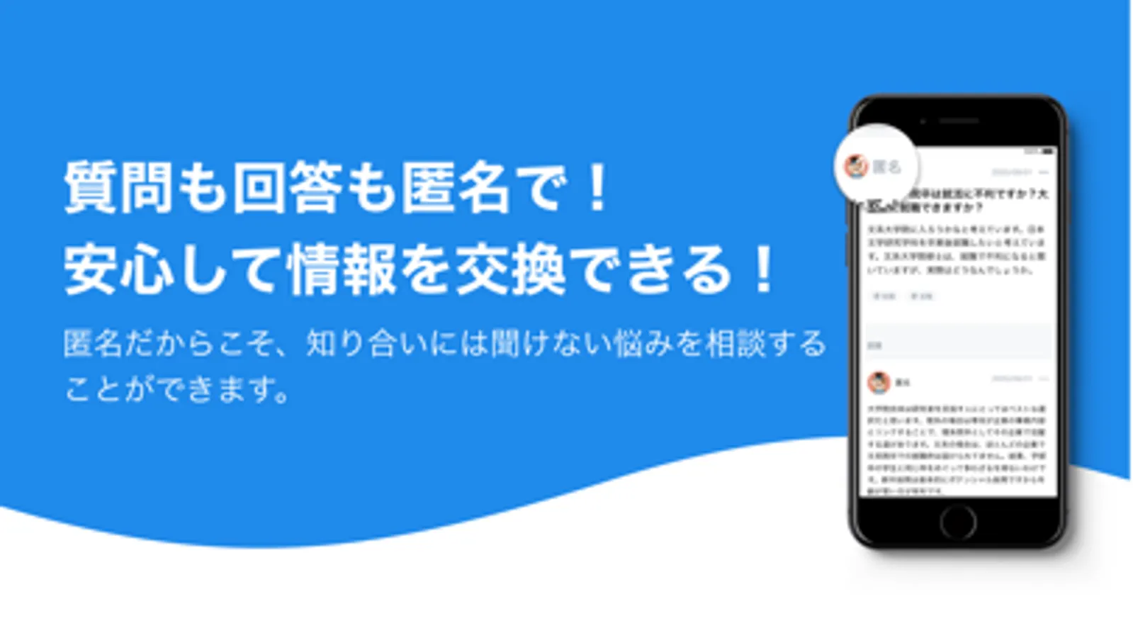 匿名サービスだから、知り合いや仕事仲間に聞けない悩みも気軽に相談することができます。他人に打ち明けづらい悩みも匿名で質問できるため安心です。