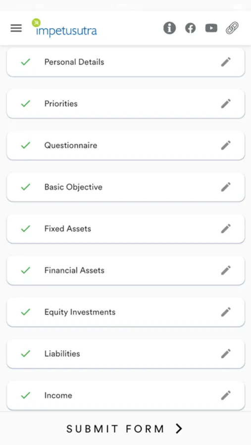 A potential investor can gauge his financial risk-taking ability through the profiling system. Once the investor completes the profiling, they can schedule an appointment with Impetus to have their financial roadmap assessed.