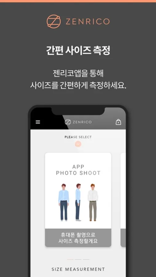 이제 간편하게 앱으로 자신의 사이즈를 층정하세요.
