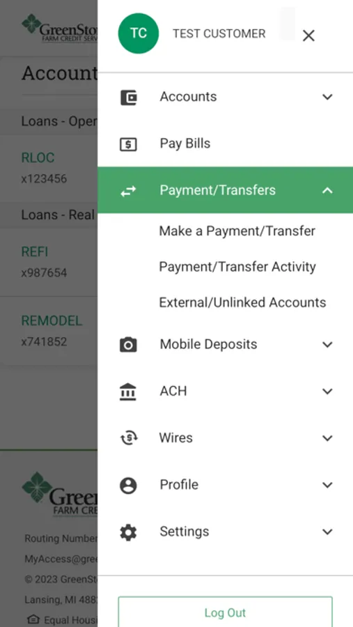 Features include the ability to view your account balances and transaction activity, make payments, disbursements or transfer between accounts.