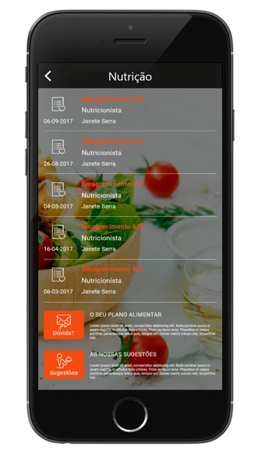 Após consulta com o nosso nutricionista no ginásio poderá consultar o seu Plano Nutricional, assim como ter acesso a dicas para melhorar o seu estilo de vida. Nesta área também poderá comunicar com o seu Nutricionista.