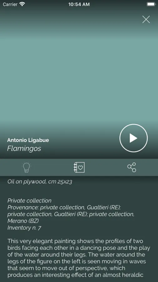 The exhibition, conceived and created by Augusto Agosta Tota, Marzio Dall'Acqua and Vittorio Sgarbi, organized by the Antonio Ligabue Study Center and Archive of Parma, promoted by the Antonio Ligabue Archive Foundation of Parma, included in the calendar of initiatives of Parma Italian Capital della Cultura 2020 + 21, presents 83 paintings and 4 sculptures by Ligabue, capable of analyzing the themes that most characterized his artistic parable, from self-portraits, to landscapes, to wild and domestic animals.