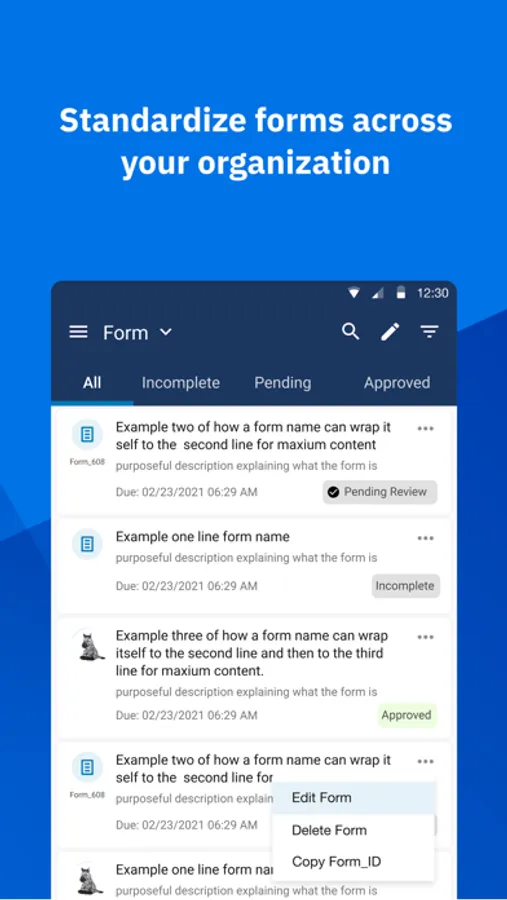 Never waste time filling out forms by hand again! Create, search, complete, and escalate all forms you use at work from your smartphone or tablet.