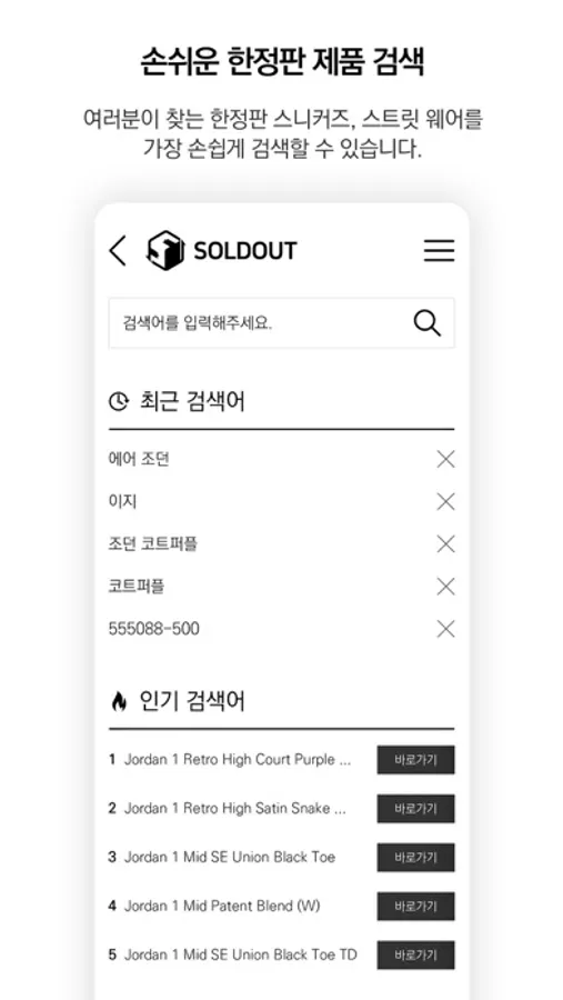 순식간에 솔드아웃된 제품을 손쉽게 검색하고
