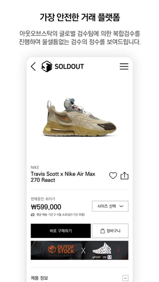 솔드아웃은 국내 최초의 한정판 제품 거래소인 아웃오브스탁이 출시한