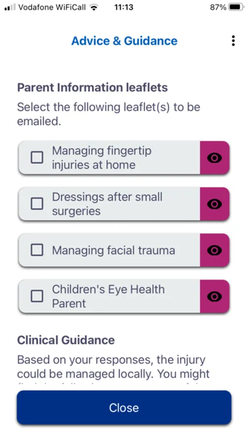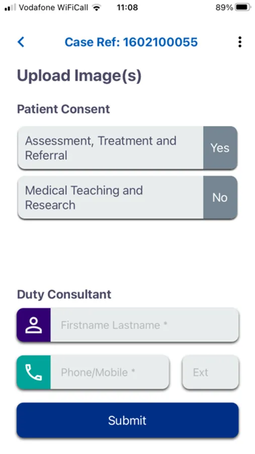 TriVice is a mobile app that can be downloaded from the App Store and is also available as a web-based desktop version. All acute referrals to specialities can be routed through the app. The app captures patient demographics, details of the injury and facilitates the upload of clinical photographs and images.