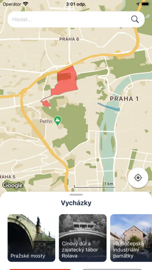 • Výběr vycházky pomocí mapy nebo z nabídky pod ní.