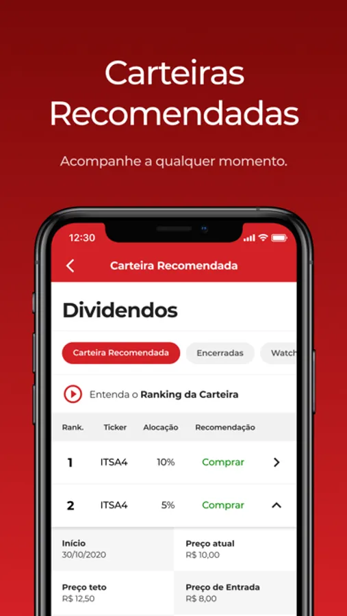 Carteiras de recomendações de ativos;