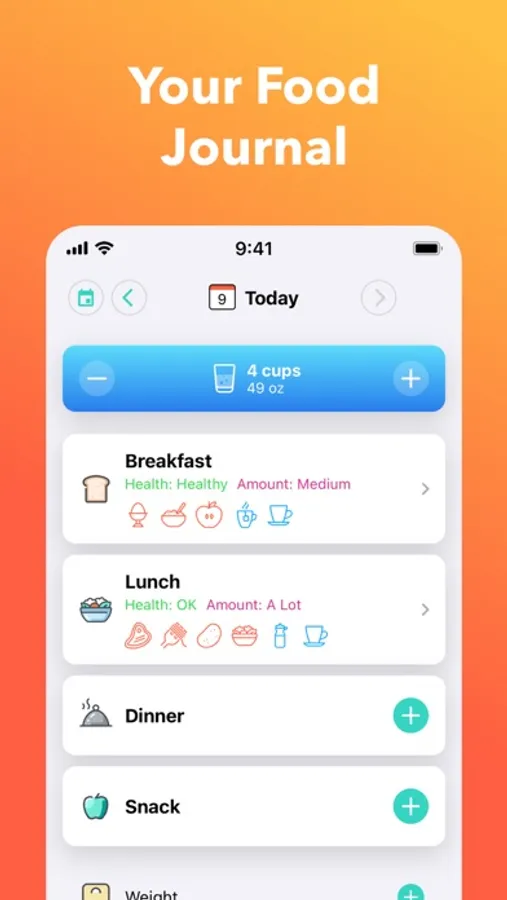 Set up useful reminders after each meal or once a day. When the time is right, fill in the form in a few seconds.