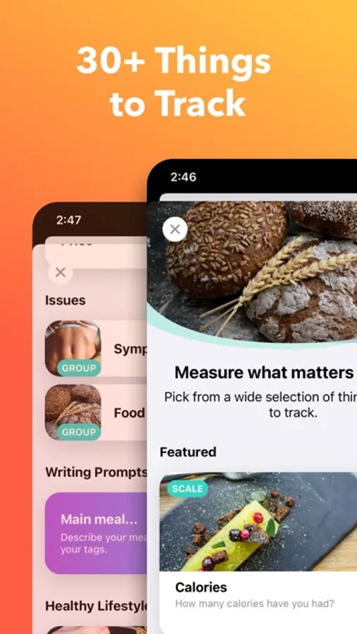 - Track anything from 30+ categories ranging from food and drinks to places, health, and fitness