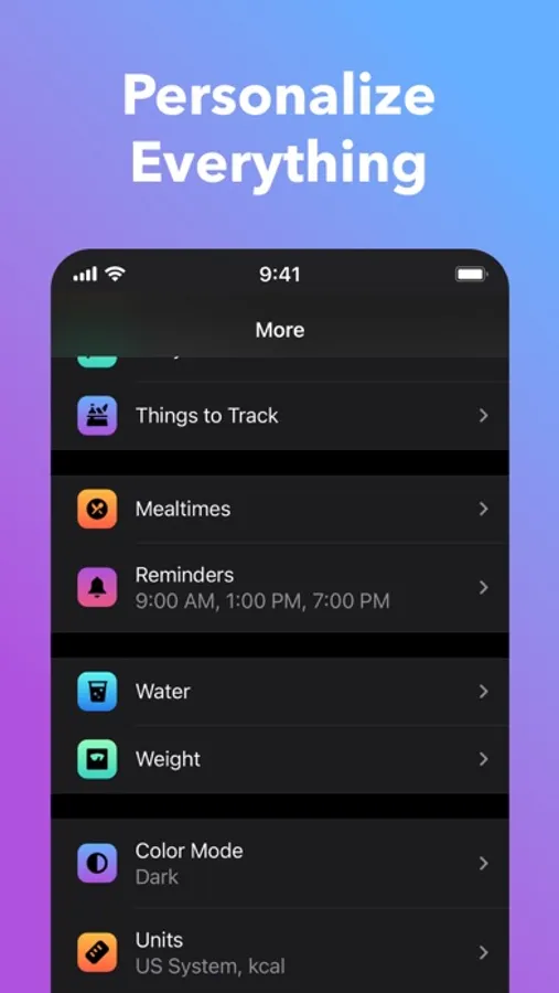 With Nutrilio, you can mix and match your own entry form. Spend time only on things you would like to track. Is it your diet, water, weight, fitness, mood, or health issues? Or maybe the price or origin of your food. We have 30+ categories to explore.