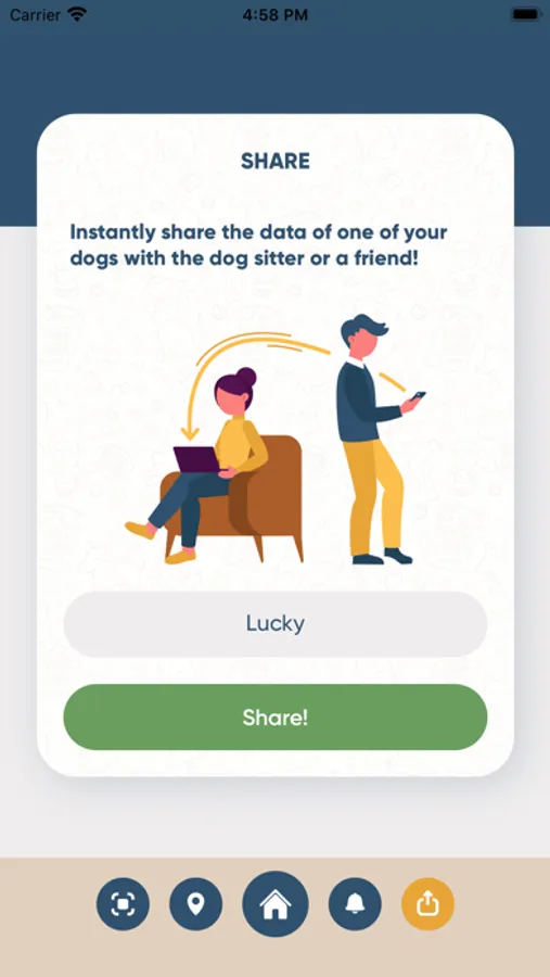 Instantly share all informations about your dog with the dog sitter or with your friends!