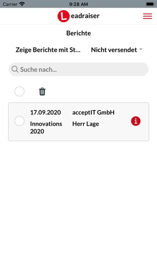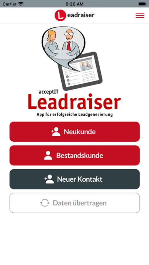 Messen, Kongresse, Kundenbesuche… Mit der App acceptIT Leadraiser erfassen und qualifizieren Sie Ihre Kontakte im Handumdrehen. Einfach Visitenkarte scannen, mit wenigen Klicks Besuchsbericht erstellen, Workflow anstoßen, Follow-up schicken, fertig.