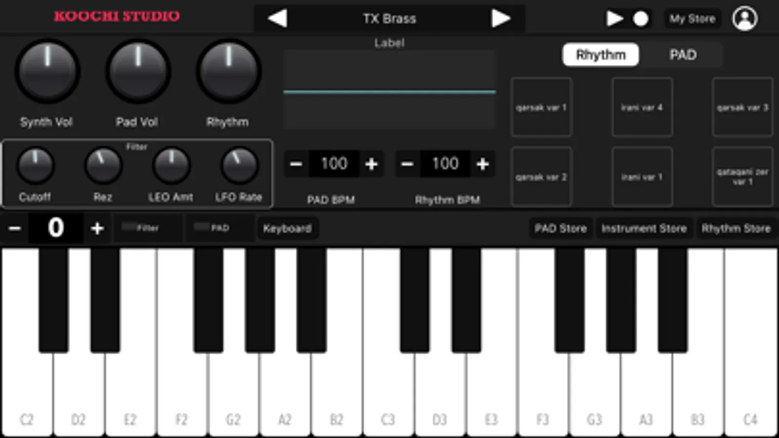 Koochi Studio is the First Afghan Synth and Sampler Application that allows you to play instruments such as: piano, guitar, electric guitar, oud, tambur, Accordion, violin, ney, flute, saz baglama, clarinet, saxophone, violin, Rabab, Strings and santur, etc…