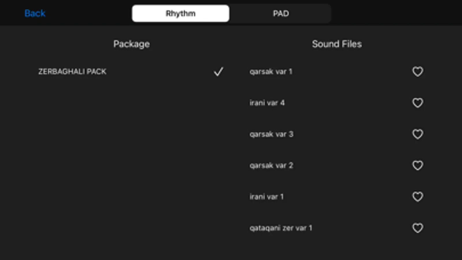 The In-app Purchase Taals include Dadra, Keherva, Geda, Mughuli, Qataghani, Parde Awal, Afshari, Herati, Pashto, Qarsak, Gonjeshkak, Rupak, Bandari, Arabic, Bangra and many more.