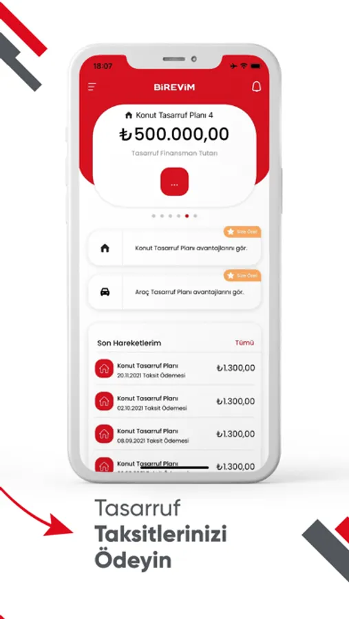 Üstelik, BİREVİM Mobil’in yeni yüzüyle tasarruf planı detaylarınıza hızla erişim sağlayabilir, hem kredi kartı ile kolay ve güvenilir bir şekilde tasarruf taksiti ödeyebilir hem de ödeme geçmişinizi görüntüleyebilirsiniz.