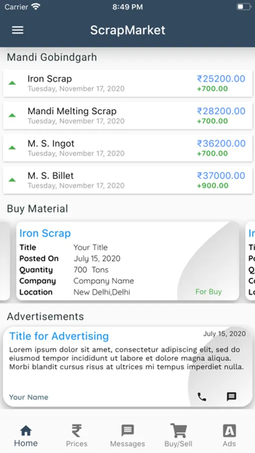 Scrap Market App is the best place to get accurate news or update of all types of Metal and Plastic. For Daily Steel Market Price just download app in your mobile and receive the Latest Steel Price and Plastic of all Cities Market on daily basis.