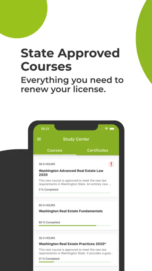 Top quality, state approved education you can use to renew a real estate license or become a licensed real estate salesperson or manger. Courses are easy to access, easy to use, and highly useful. Together with our website, the app gives you the ability to study when anywhere you want.