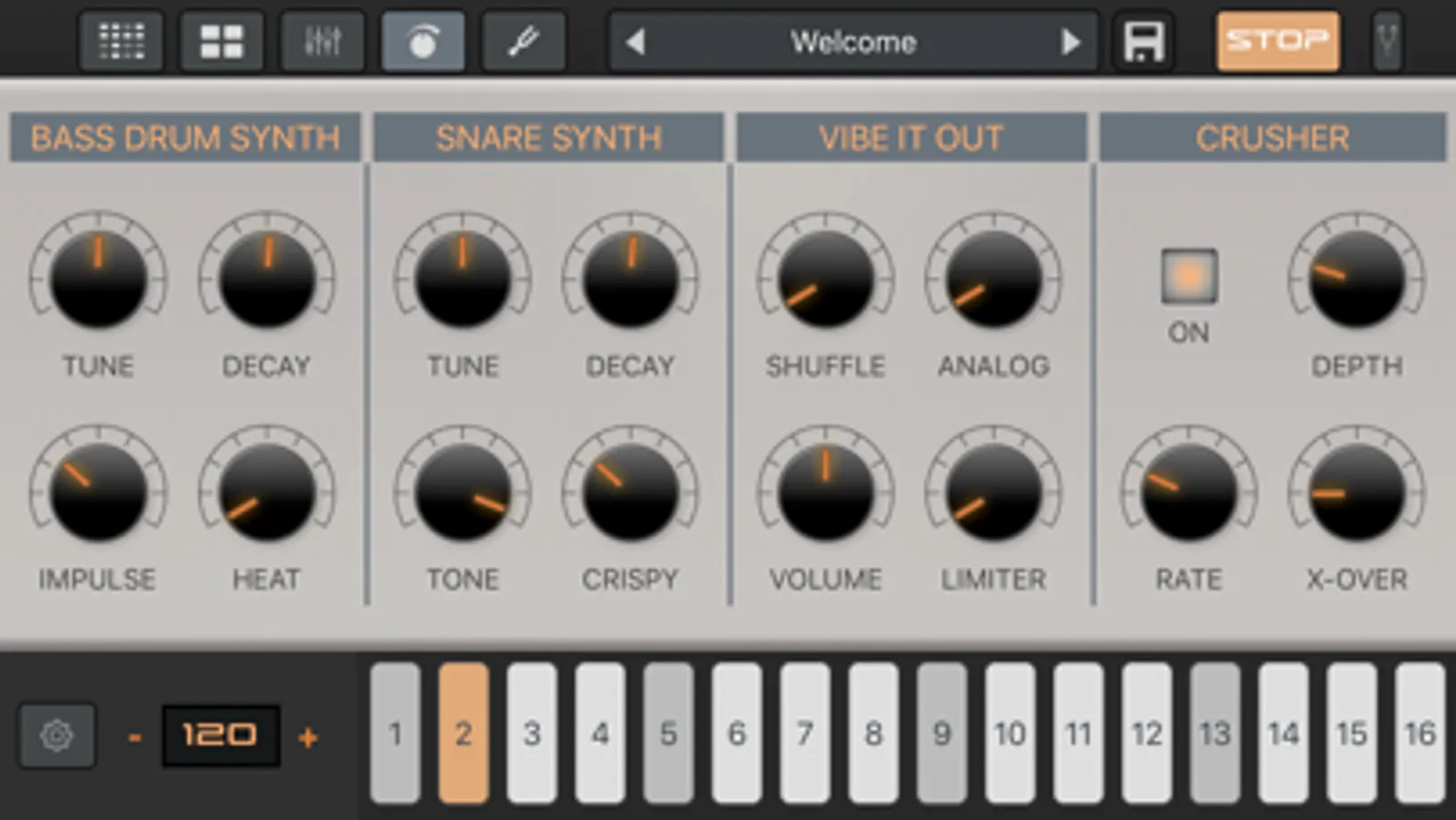 This app is inspired by a specific piece of drum machine hardware.