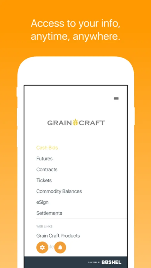 The Grain Craft Grower Connect app is free, secure, and developed by the industry-leading Bushel platform.