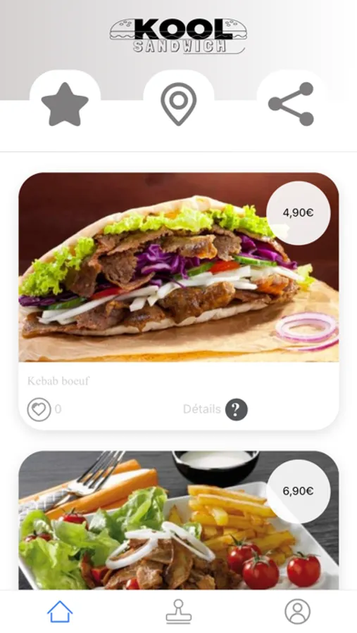 Application simple, gratuite, pratique, intuitive, et idéale pour garder le contact avec votre restaurant Sandwich Kool.