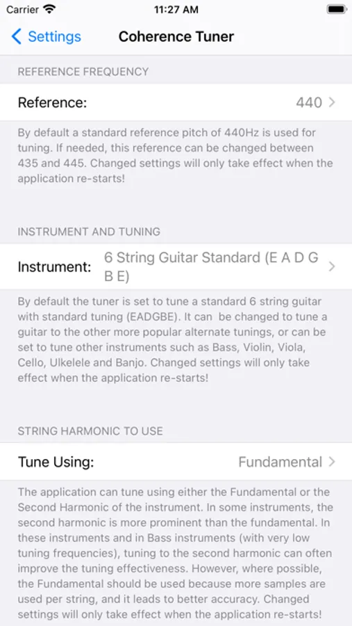 The engine can also be configured to tune using either the string Fundamental or its Second Harmonic - maximizing the range of instruments and frequencies that can be covered.